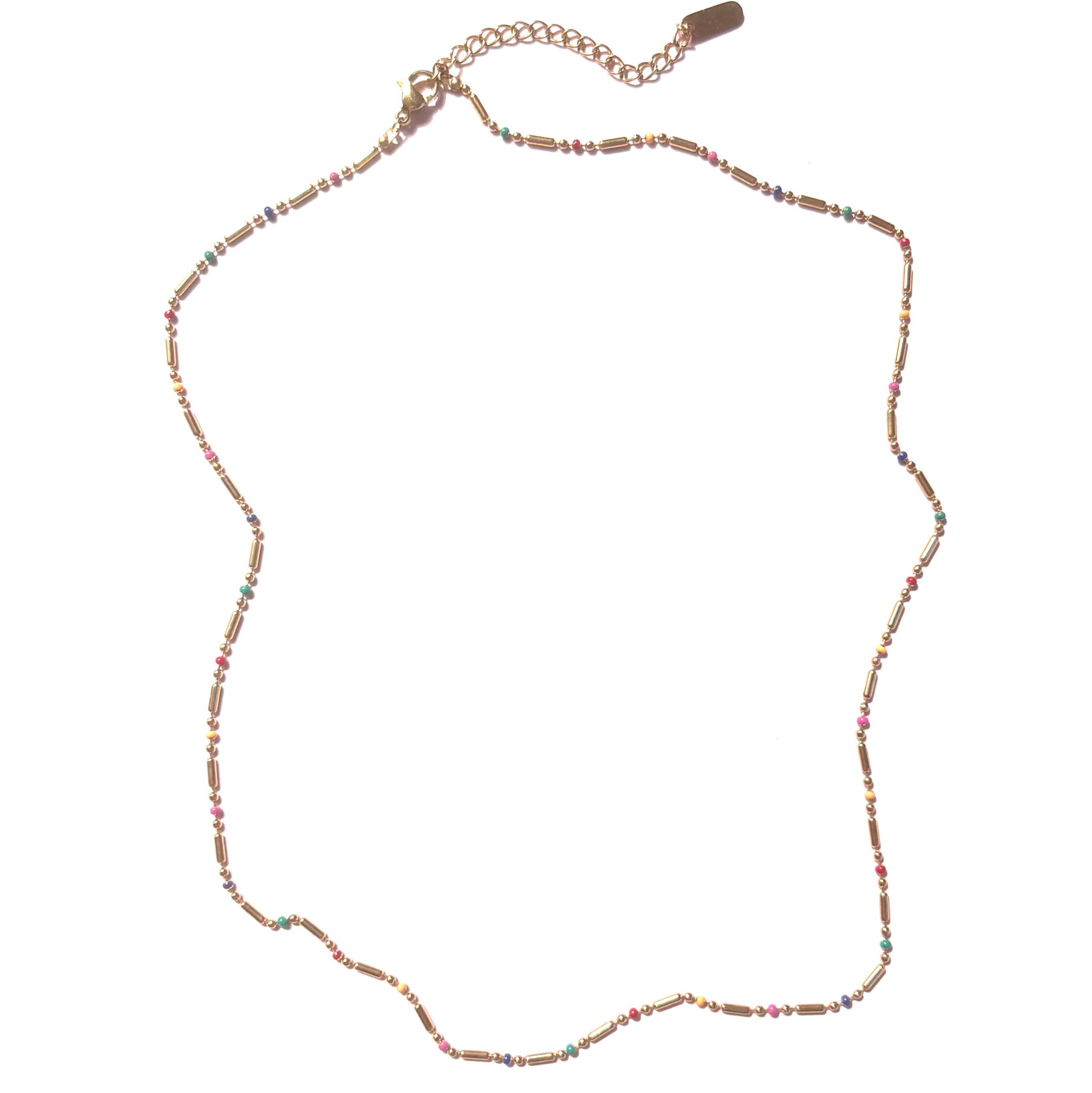 A sweet splash of colour to brighten up your day. This multicoloured necklace features a playful mix of tones, perfect for adding a little charm to any outfit. Light, fun, and easy to wear, just a happy little detail for your everyday look.